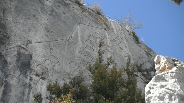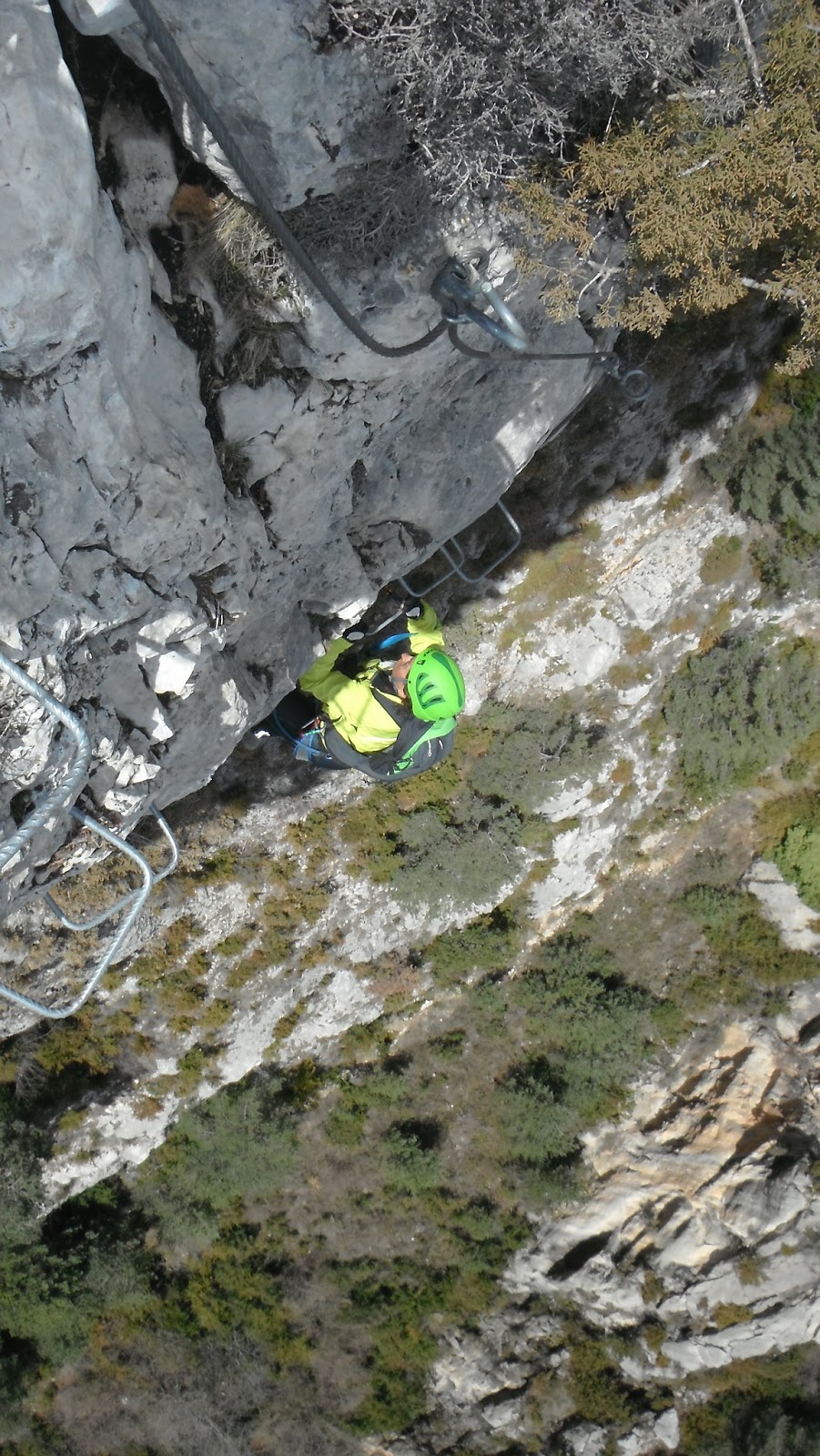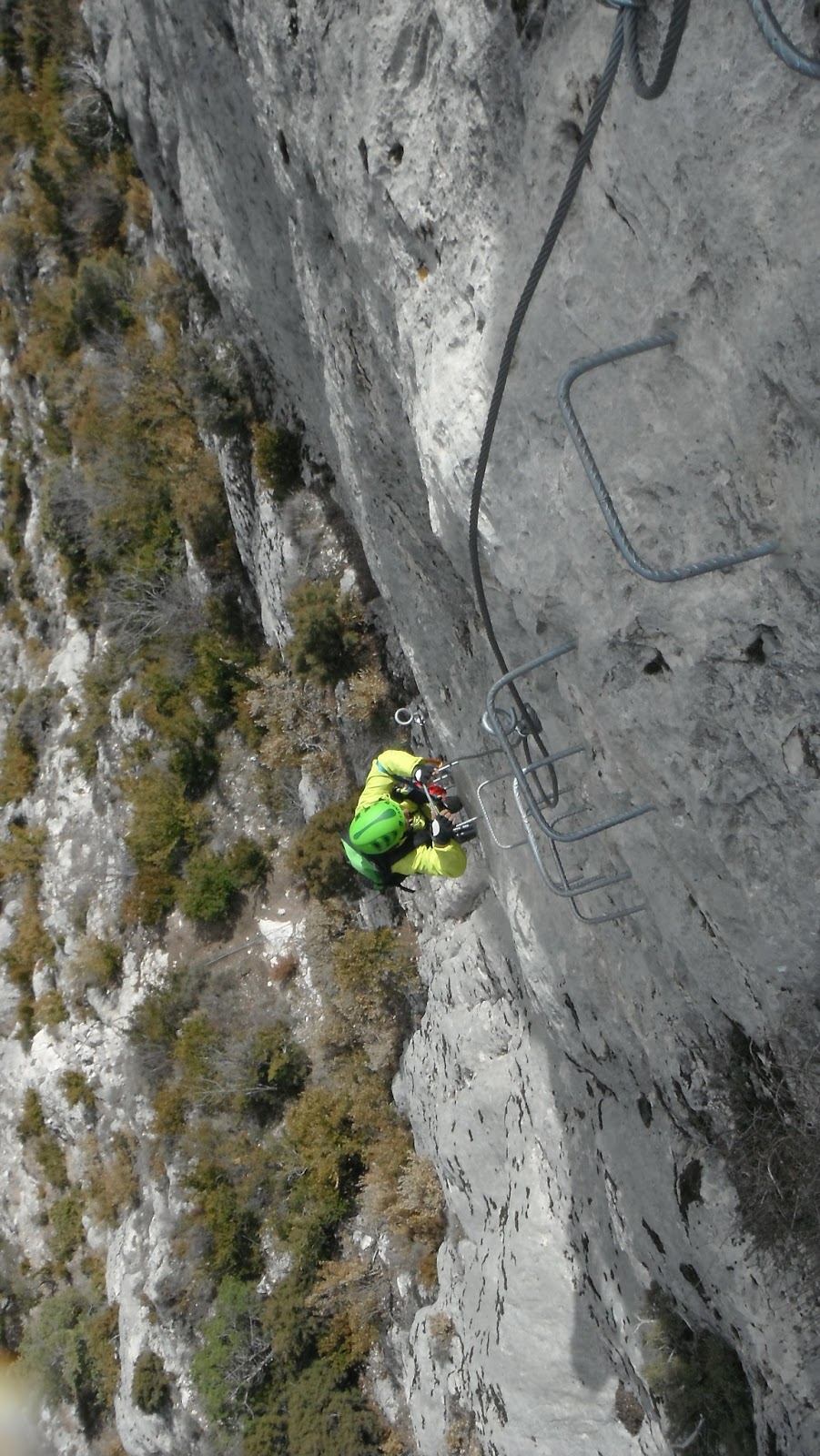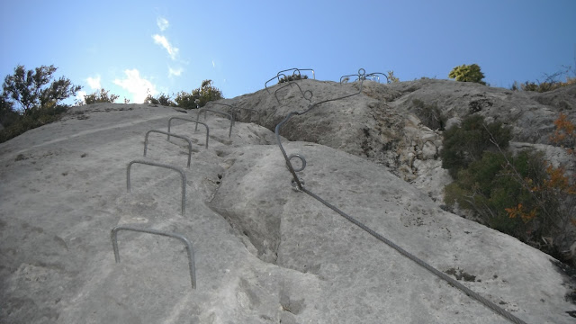 La ferrata sigue subiendo pero estas vez las grapas ladean a la izquierda lo que hace un poco incomoda la progresión.