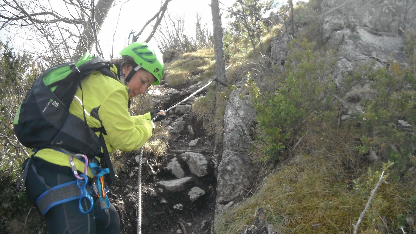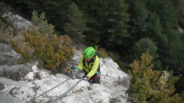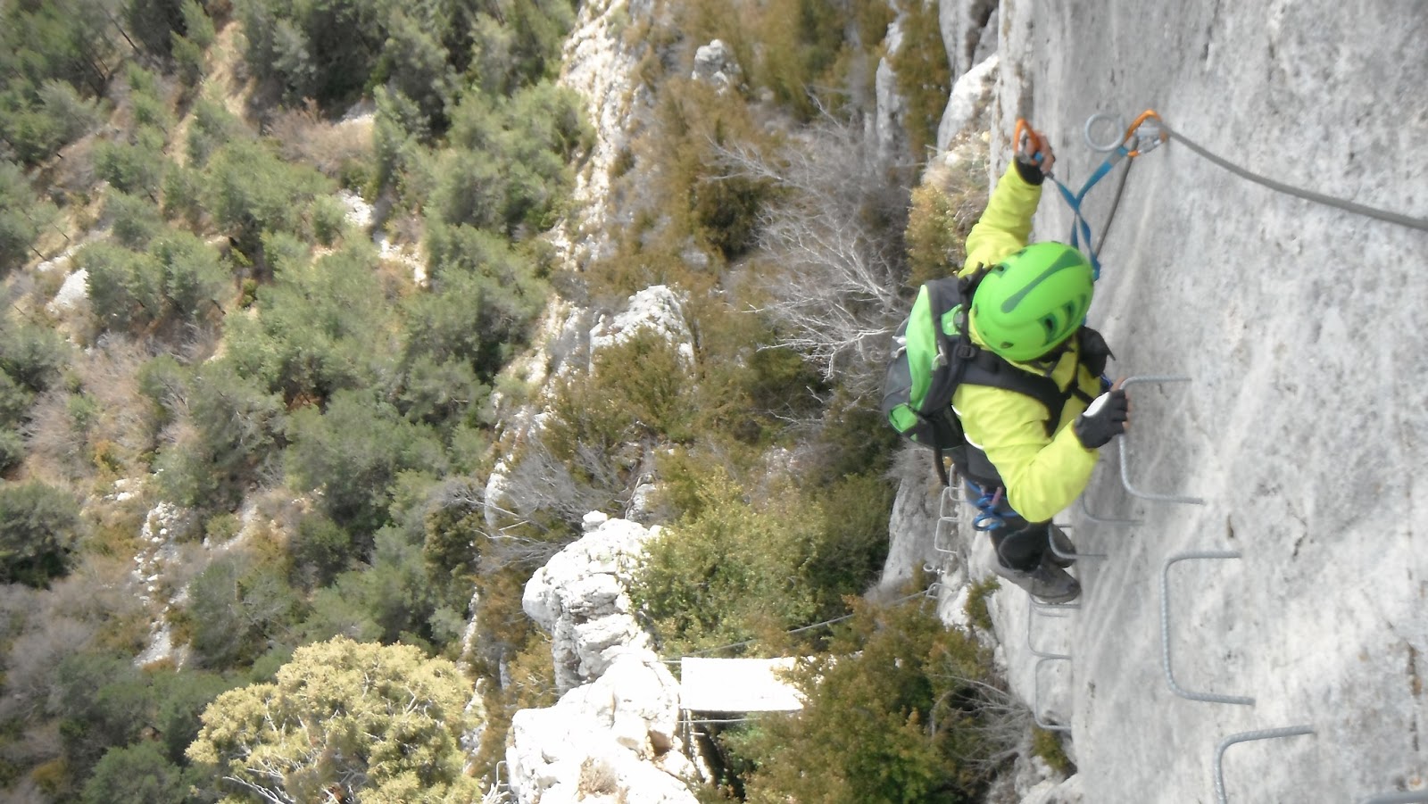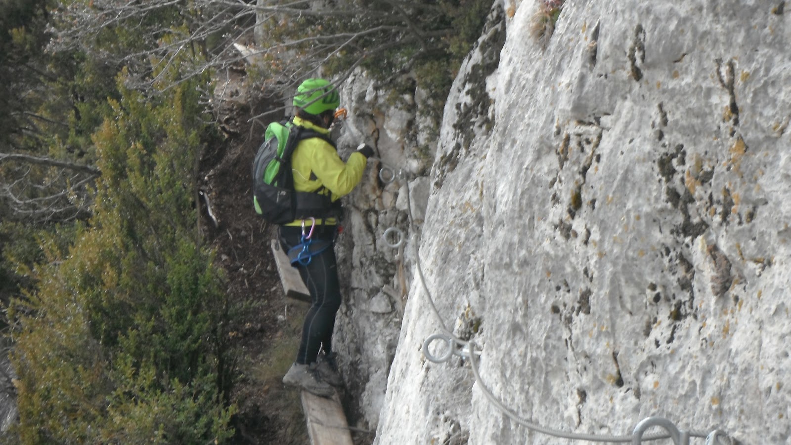 La ferrata sigue subiendo pero estas vez las grapas ladean a la izquierda lo que hace un poco incomoda la progresión.