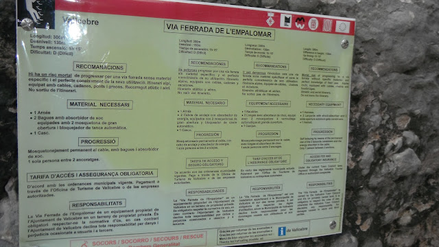 Para llegar a la ferrata de Roques de L'empalomar, tenemos que descender el coll por la vertiente contraria a la que traíamos, nos encontraremos una cadena de nos ayudará a sortear un pared casi lisa y al poco tiempo encontraremos un poste que nos indica la dirección a tomar para realizar las dos ferratas que están en la misma zona pero en paredes enfrentadas.