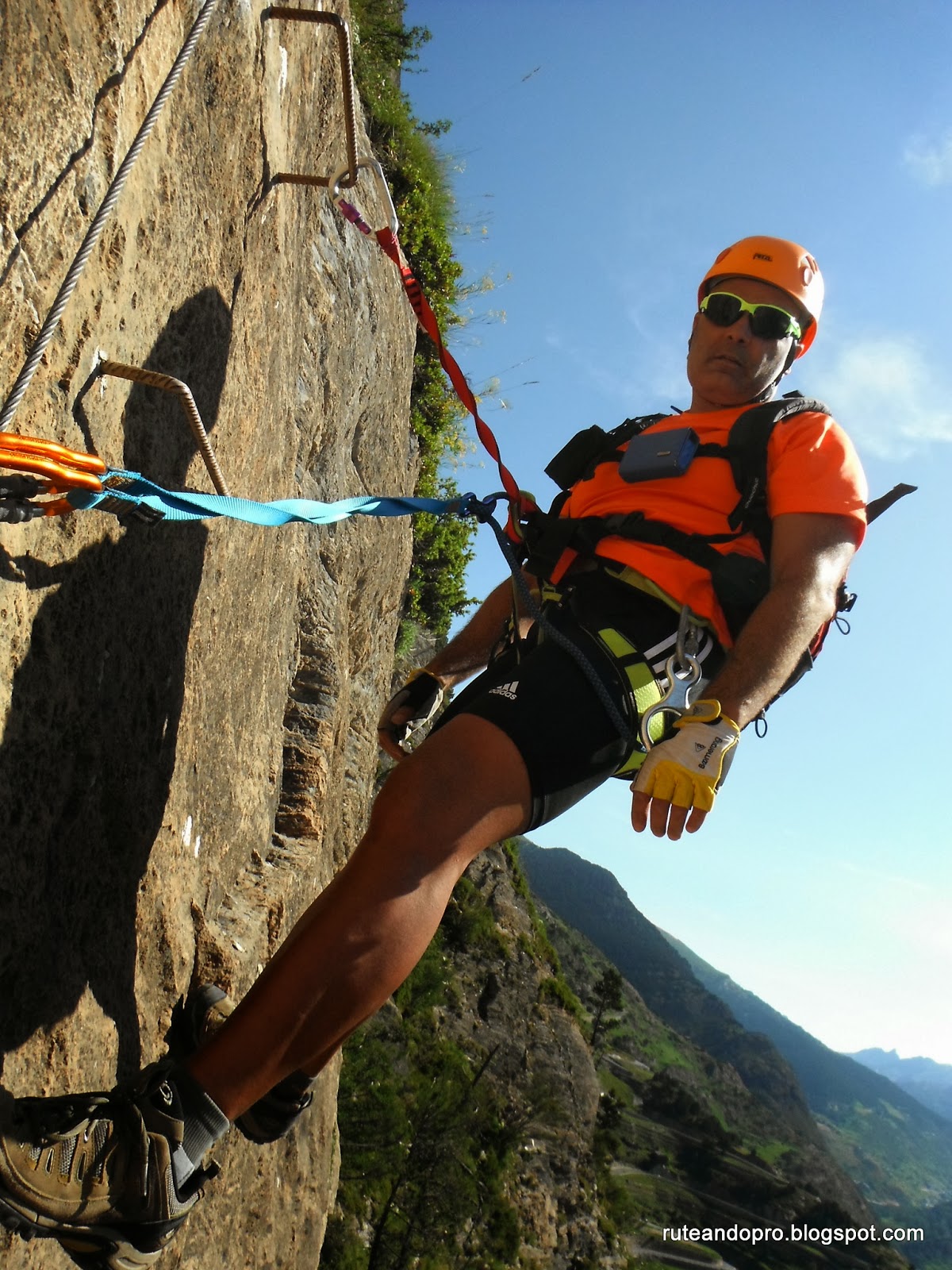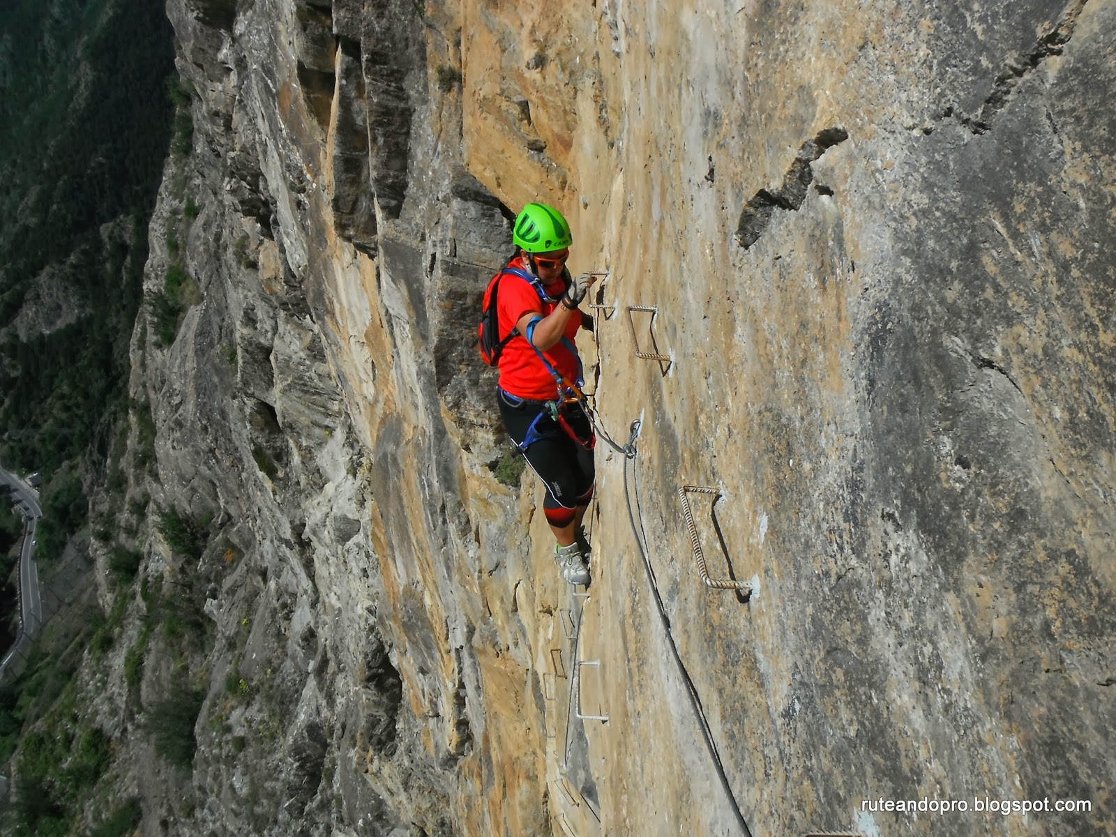 Es una vía ferrata que alterna la caminata con tramos más aéreos, muy explosivos, combinados con otros más fáciles. Se inicia en la carretera y se empieza a subir con rapidez en una pared bien equipada, larga y vertical, que nos conduce a la izquierda hasta llegar a un camino de tierra. Este primer tramo requiere un esfuerzo que se irá incrementando a medida que vayamos subiendo.