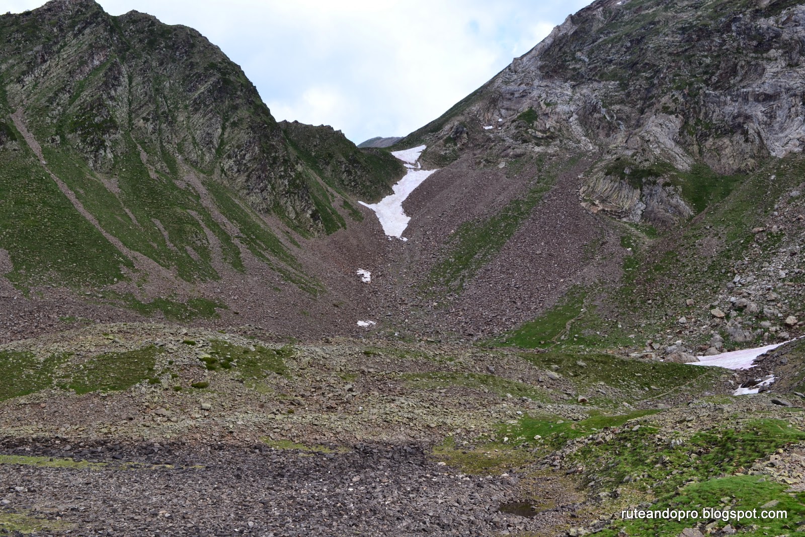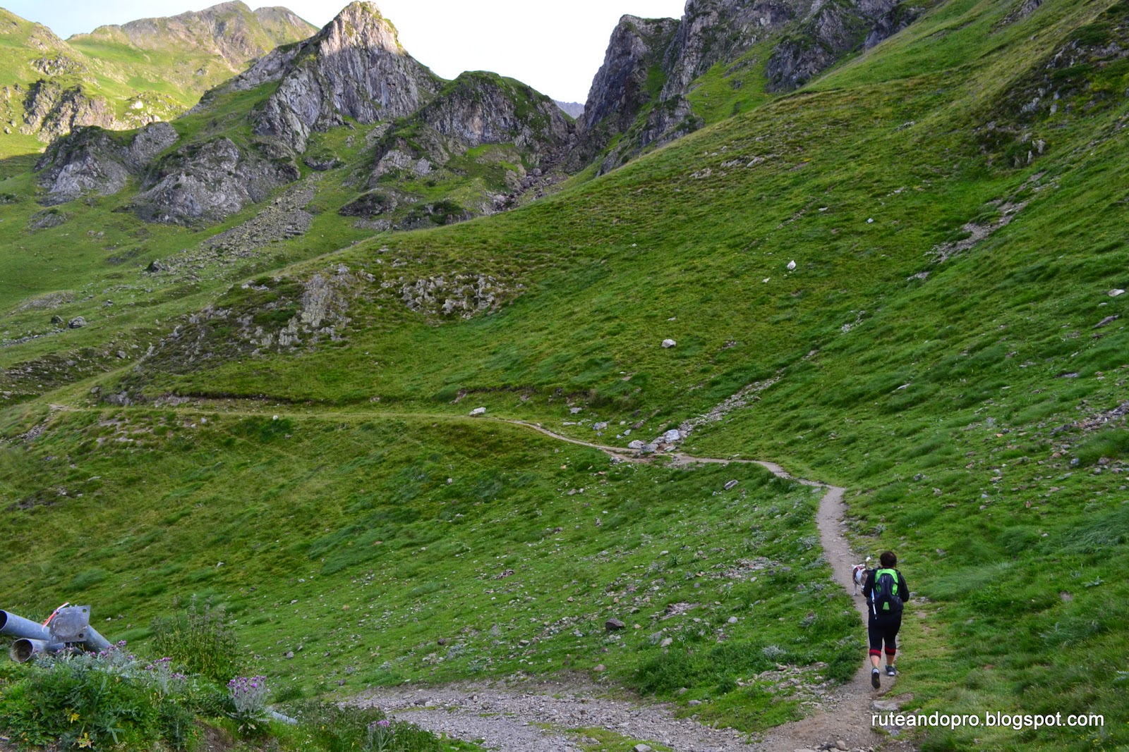 La ruta comienzo por un sendero en la falda de la montaña, y la va bordeando, hasta legar a un cruce donde se une por la izquierda a un GR. que viene del Lac d'Oncet, continuamos recto y el camino se pone un poco más quebrado pero sin llegar a ser complicado.